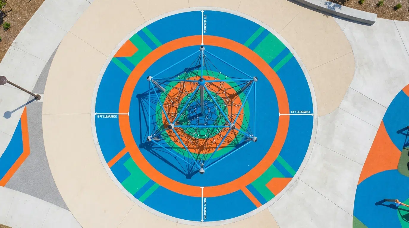 שטח הבטיחות הוא האזור שמסביב למתקן שחייב להישאר פנוי מכל מכשול. זהו לא רק השטח שהמתקן עצמו תופס, אלא גם מרחב נוסף שנועד לקלוט נפילות אפשריות. לפי התקינה האירופית והישראלית, שטח הבטיחות נקבע לפי גובה הנפילה החופשית מהמתקן.